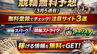 ※本記事はプロモーションを含みます。 競輪無料予想(3月5週目)|無料登録でチェックしやすい注目サイト3選 「まずは無料で見られる競輪予想をチェックしたい」 そんな人向けに、今回は競輪無料予想(3月5週目)として、無料登録で閲覧しやすい競輪...