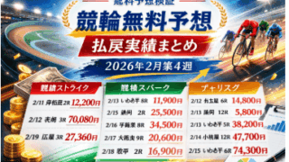 11月21日~26日の競輪無料予想を徹底比較。競輪スパーク・チャリスタ・競輪ストライクの的中実績をまとめました。デイ・ナイター・ミッドナイト別の特徴も把握でき、無料予想選びの参考になります。