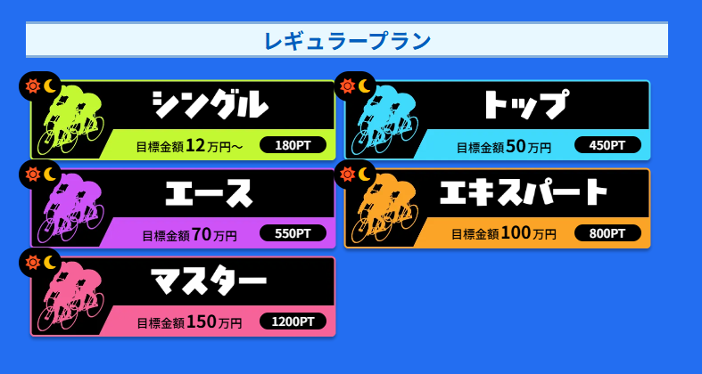 本格的に稼ぎを狙いたい方向けに、目標金額に応じたレギュラープランも多数用意されています。